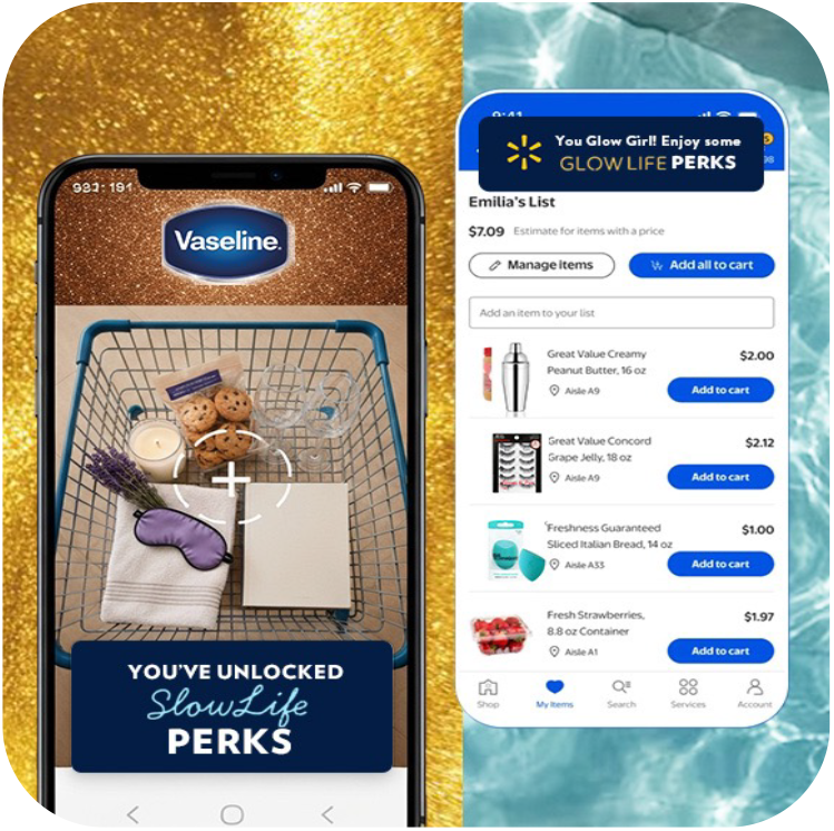 A digital and IRL cart-scanning experience that revealed whether you’re #GlowLife or #SlowLife, launching exclusively with Walmart+.